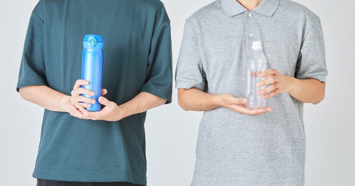 ボトルの形には、細長い「スリム型」、飲み口が広い「ワイド型」、コップのような「タンブラー型」などがあります。素材は、ステンレス、アルミ、プラスチック(樹脂)が中心です。